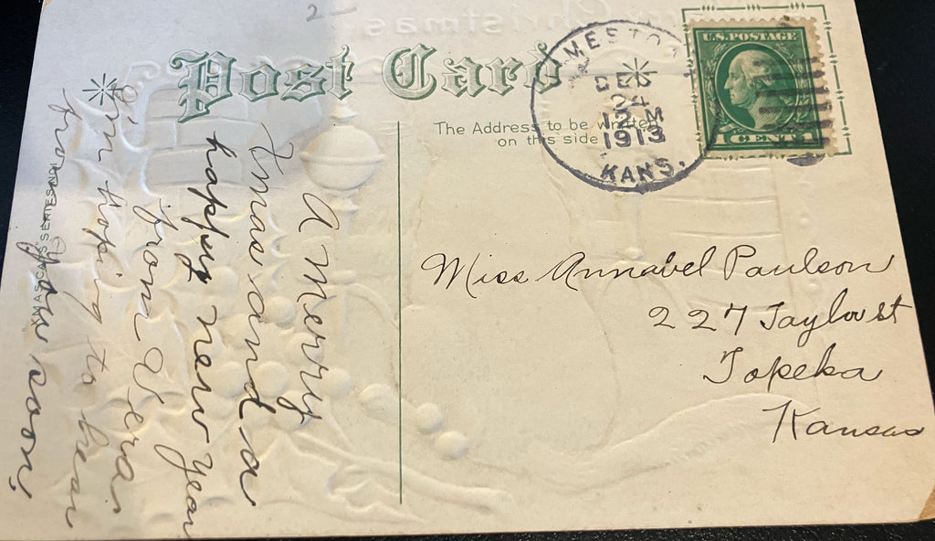 Vintage Embossed Christmas Postcard Black Kitten by Fireplace 1913