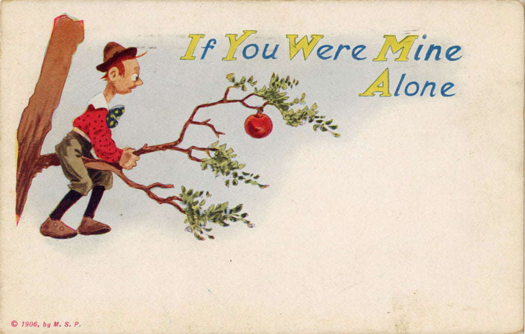 If You Were Mine Boy Plucking Apple Valentine Vintage Postcard 1906 M.S.P.